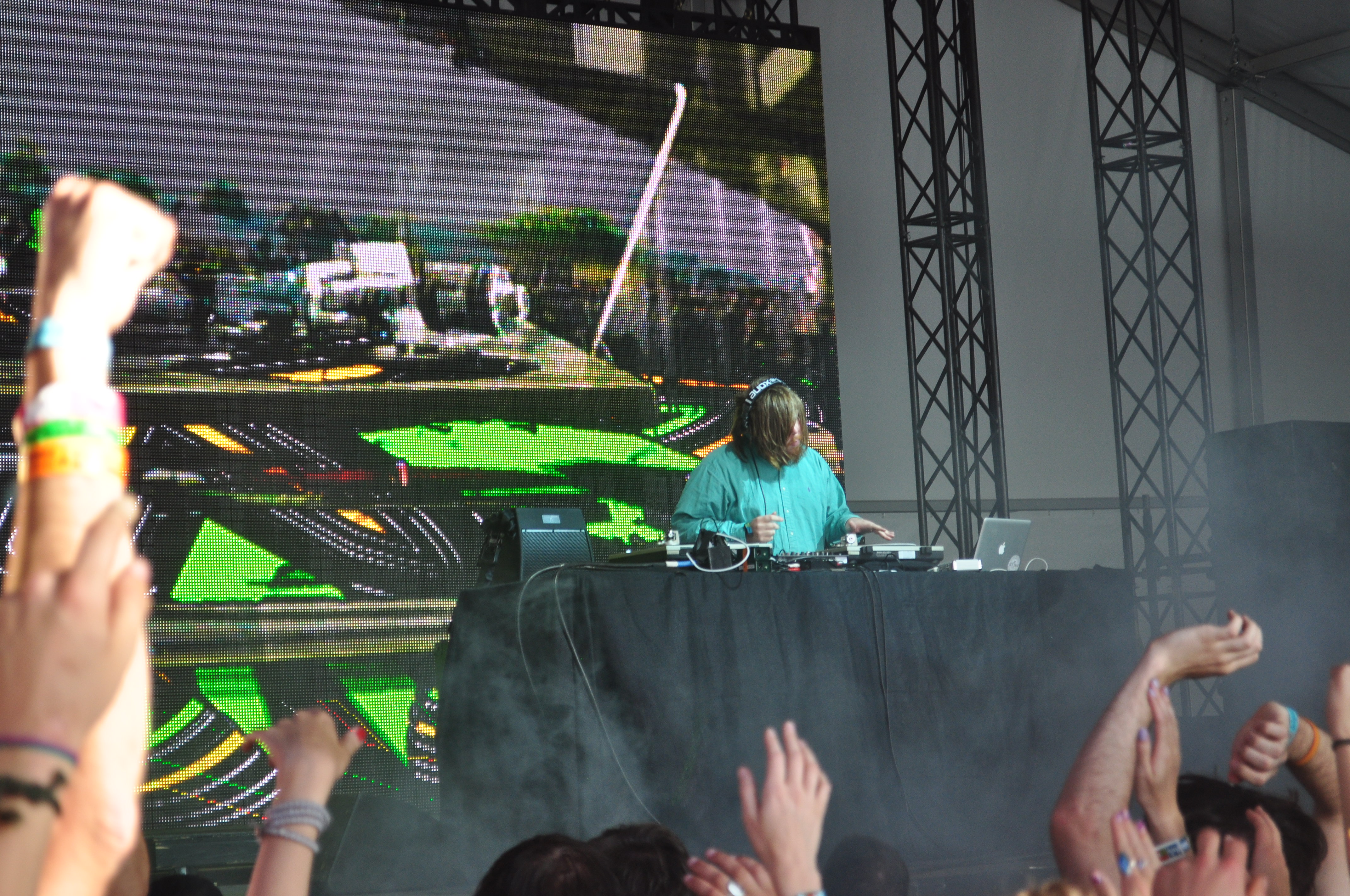 That being said, the majority of the crowd remained enthused for the 45 minute runtime despite the fairly early start (5:40). Dressed in camo head to toe, he remained intensely focused on the pads in front of him, rarely looking up to see the crowd in front. He’s not much of a performer by his looks (he might be 5′ 6″), but he makes up for it by doing far more than just about any other DJ out there. Maybe I’m just a hater and Araab’s set is the greatest thing since the introduction of the airhorn into DJ sets. With his production chops though, I have faith that he can improve his live set into something more complete. Step off the Skrillex throttle for quick sec. Take a breath and maybe I won’t look like this in minute 40.